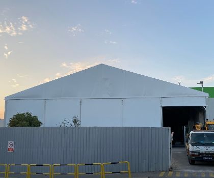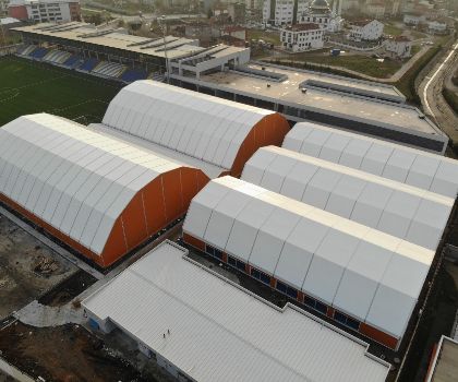 S350GDZ275 cold-formed steel profiles used to build-up structure and high-quality 750gr/m2 PVC membrane rooftops used for roofs. Sides walls build up with rock-wool sandwich panes for better fire safety. 3 pcs 18m x 36m halls installed side by side.